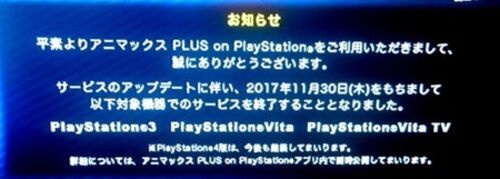 アニマックスPLUS Vita版のサービス終了(2017年11月末)について